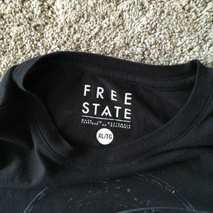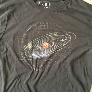 Black t-shirt with the solar system on it. Size XL but fits like a L.