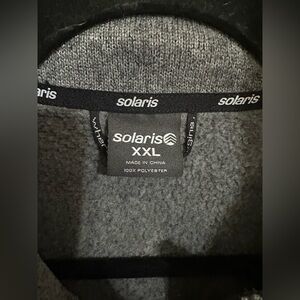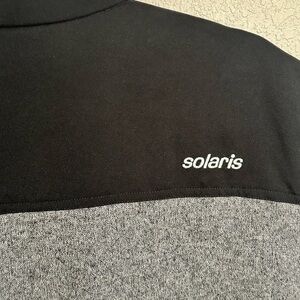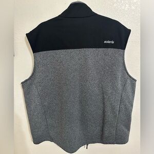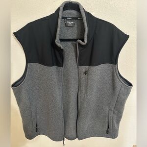 This sleek vest combines a quilted design with a high collar, offering both style and warmth. Crafted in gray and black, it features a full-zip front and a fitted silhouette, making it perfect for layering during outdoor activities. Its lightweight yet insulating material ensures comfort and functionality. Three functioning pockets with zippers in the front. No flaws.