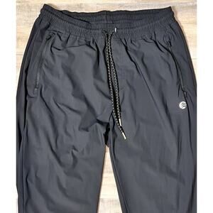 Solaris Men’s LG Active Wear Joggers Nylon Spandex Black Zip Pockets Drawstring
