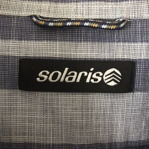 Solaris Mens Short Sleeve Button Down 100% Cotton Shirt Size Large, Blue striped woven.