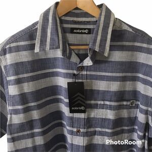 Solaris Shirt Short Sleeve Button Up Woven Stripe Shirt Mens Large Blue Outdoors