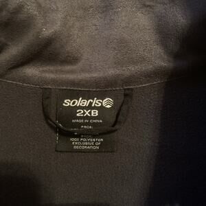 The Solaris Vest is a stylish and comfortable outerwear option for men in size Big 2X. Made from a blend of polyester and spandex, this mid-length vest offers a solid gray color with a softshell fabric type. It features a full zip closure, stand-up collar, and multiple pockets for functionality. Ideal for travel and casual occasions, this vest is water-resistant and stretchy, making it perfect for outdoor activities like walking, golf, and hiking. The classic and versatile design of the Solaris Vest makes it a must-have for any man's wardrobe.