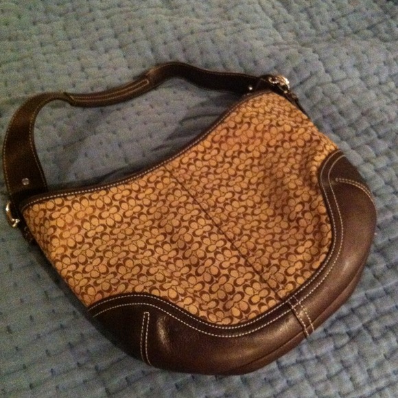 Pics posted. 13 in across and 8 inches tall. Inside has a zipper pouch and two side pickets. Very clean.
