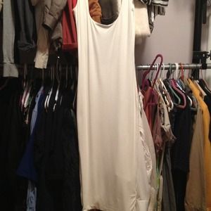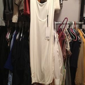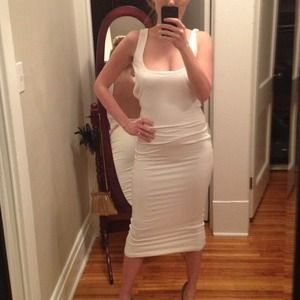 This is the most amazing dress, unfortunately it is too big on me as u can see in the picture... I love it so much I almost took it to a tailor because they didn't have my size when I ordered it. It is brand new a size 6 uk I am about a 0-1 us and a 25-26 jean size and its big on me. It's a very stretchy fabric so it can definitely go up in size. The color is white but not stark white. the brand is aqua
