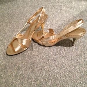 BCBG Girls gold heels with golden mirrored heel. Worn only once! Very comfortable.