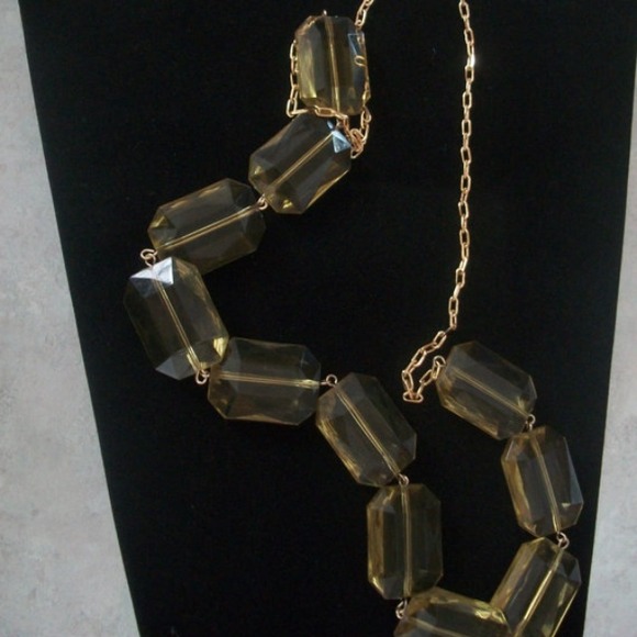Handmade 24 inch gold colored chain neckalce with acrylic rectangular beads! A gorgeous, light weight necklace!