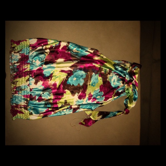 Silk flower tank with bow that ties around neck! Great for work with a sweater!! Size is xlarge but fits large.