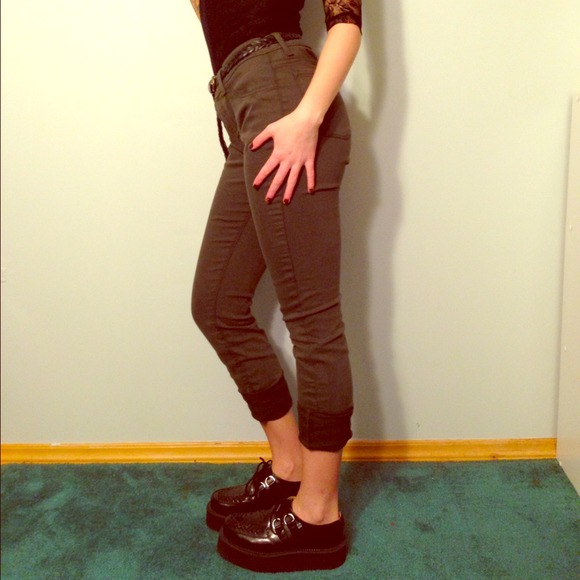 High waist (right at belly button) stretch skinny jeans from Tilly's. very comfy and light weight!