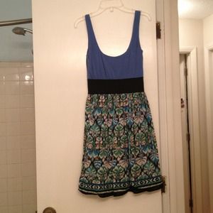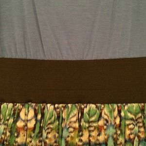 Blue and pattern. Very flattering waist band. Gorgeous with wedges or sandals. Delia's.