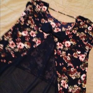 Knit flower top, navy blue mesh insert with bow🎀. High/low top very light and comfy