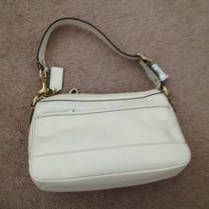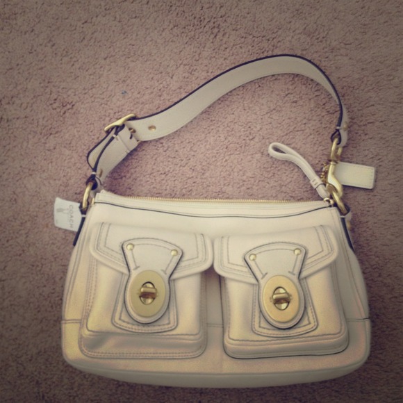 Off-white and gold Coach purse, new with tags. My aunt bought it for me from the Coach factory store and it just isn't my style. I side lining is brown. Never used, great condition.
