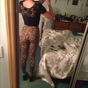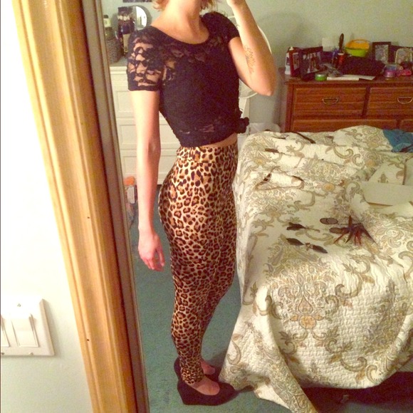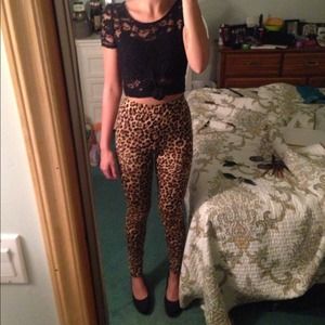 Black lace top and cheetah print leggings. Items may be purchased separately upon request!
