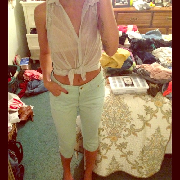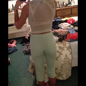 Mint green capris paired with a sheer and lace white tie top, items can be purchased separately upon request! NWOT