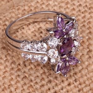 Ladies this is a gorgeous amethyst ring surrounded with Swarovski crystals 18k white gold plated!!!!! It's a gorgeous ring!!! Don't let it pass