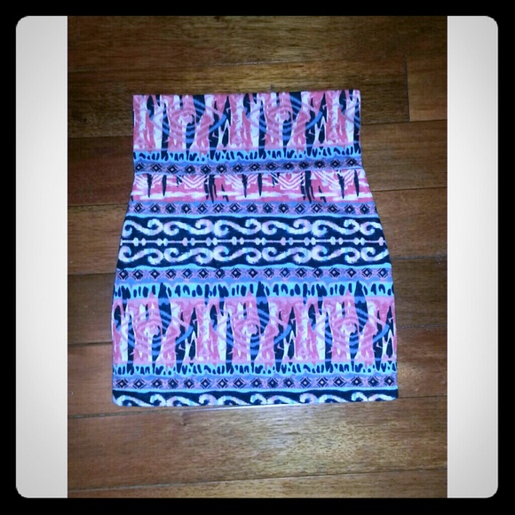Pencil skirt fitted with an attractive tribal print. Colors are most orange and black and several other colors