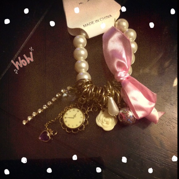 Cute little pink bow , pearls n charms ( no trades)