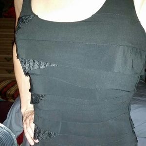 lace layered hugs the body perfectly!! Has a side zipper for slip on ease and has snaps in the shoulders to keep bra straps know place