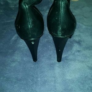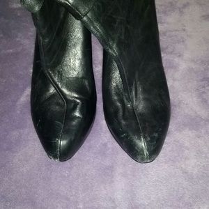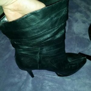 real leather booties In good condition but they have some scuffs and nicks. Can be buffed out with leather polish.