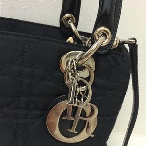 Christian Dior black nylon shoulder bag, with silver hardware. Perfect condition. No wear on corners. Inside spotless. Patent leather details. 100% authentic from my company's consignment store
