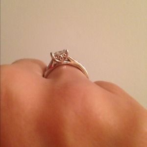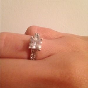Hsn absolute princess cut engagement ring! It's 925 silver . This is a great ring for days you want to change it up! I received numerous compliments on it . It is a real like diamond and you cannot tell that it's not real! Size five diamonds all around the band .
