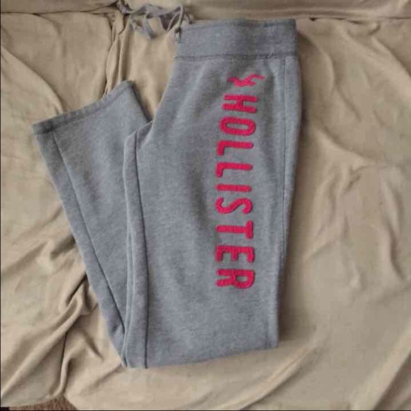 Grey with pink lettering hollister sweats . Straight leg . Size small. Excellent condition !