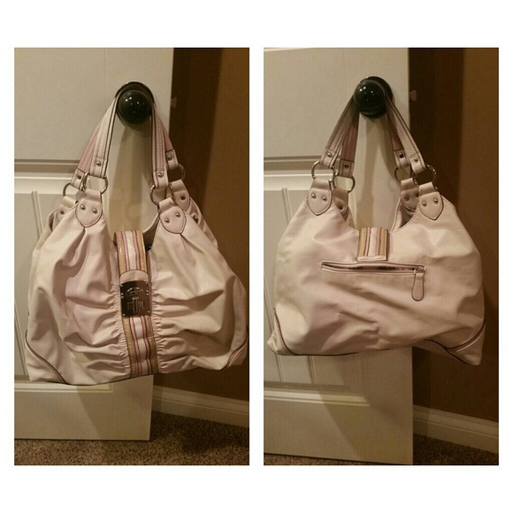 Like new Jessica Simpson oversized purse. Lots of room. Only carried a few times. Cream colored purse with blush and tan outlines.