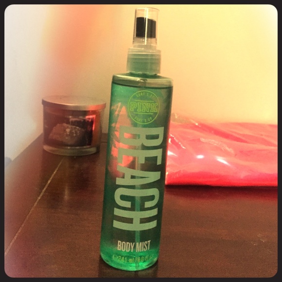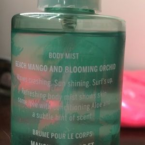 PINK collection new Beach body mist. Holds up to 8 fl oz. scent-beach mango and blooming orchid. Contains Aloe to refresh your skin during summer or all year long.