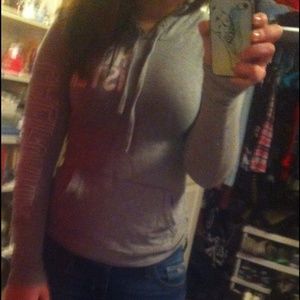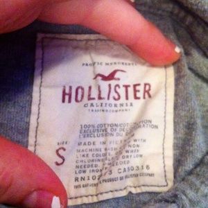 Light grey hollister size small shirt. Form fitting. So cute lightly worn and in great condition!