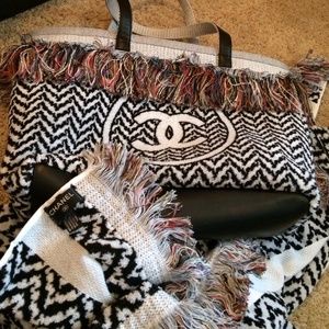 Brand new. Purchased in Seoul airport duty free last month. Beautiful beach bag( include over sized beach towel)