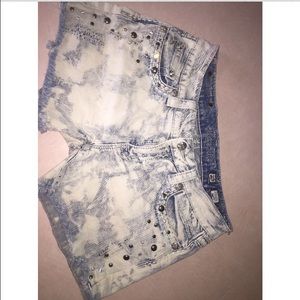Cut offs with a lot of bling! High waisted and very comfortable white wash shorts! They do have a very light pink spot on the back I didn't notice it when I left the buckle, it really isn't noticeable when they are on and flash accentuates the spot.