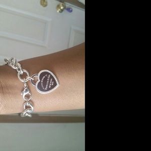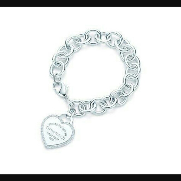 New (rare older style) tiffany & Co silver return to tiffany heart charm bracelet with diamonds.