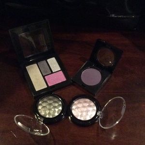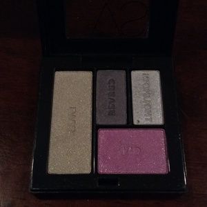Eyeshadow quad "Uptown Glam" used twice, matte purple "Wild at Heart" swatched once, metallic charcoal eyeshadow "Provocative" swatched once, and metallic pinky lilac "Intrigue" used once.