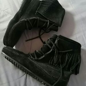 Black fringe boots, size 5 but run a little big, I'm a 6 and they fit me. Good conditon. 8/10 condition