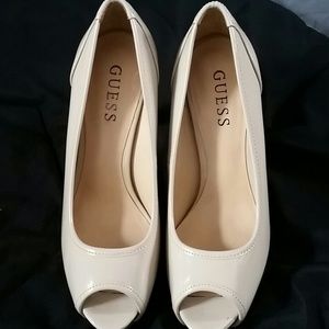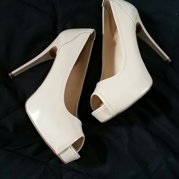 Light nude color, 4 1/2 in heel. Worn once (inside event) they look brand new even the bottoms. I have a replacement box