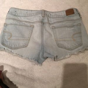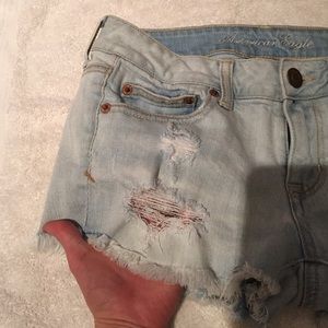 These shorts have only been worn once considering they didn't fit from the time I got them but I wish they did because they are so cute! The picture of the holes I wanted to show that the top hole does not show skin that's where the pocket is. They are super comfy and they do have stretch!