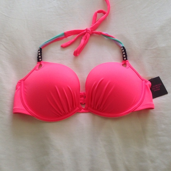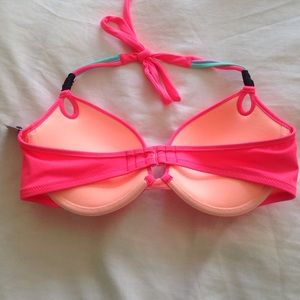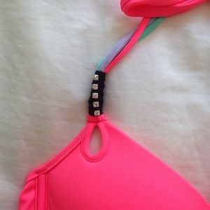 Tags still on, never worn! Size 36C, hot pink push up top. Rhinestones above the keyholes on neck ties.