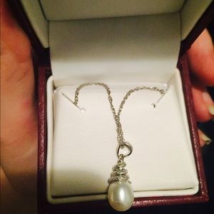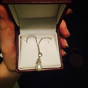 Real pearl and real diamond chips! All real silver! Beautiful necklace from helzberg diamonds! Brand new, comes with both boxes. Perfect gift for someone!