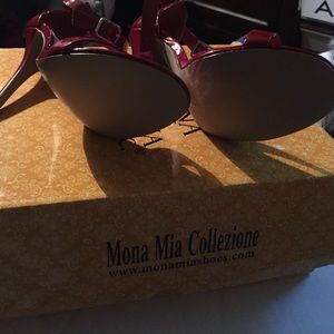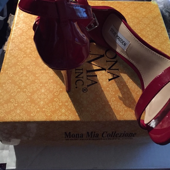 Fire red patent leather sandals. These are sexy! Only problem is I had two just like it and I purchased these while on vacation and had to get rid of the box.
