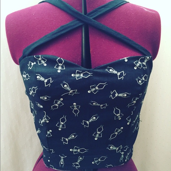 Sweet heart skeleton crop top with zipper closure at the back and cross strap at the front please check with me for measurement...and I do sew these my self:)