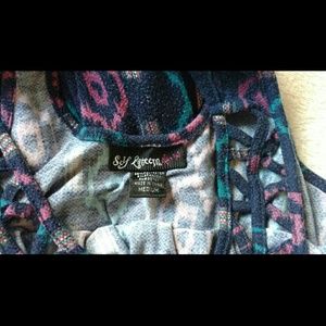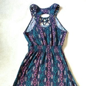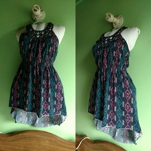 Fun patterned high low dress with a caged neckline. A favorite of mine :)