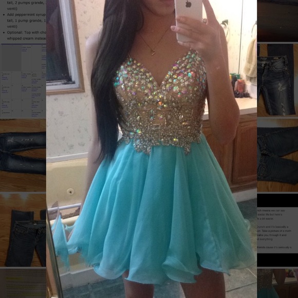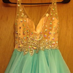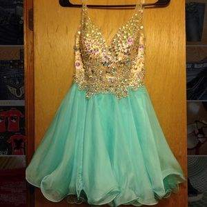 Adorable dress for formal, homecoming prom etc. V cut neck and back. Great condition, there just are a few jewels missing but it is not noticeable. If you want more pictures let me know! Also I have the matching shoes listed and can bundle. Cheaper on mercari‼️