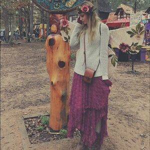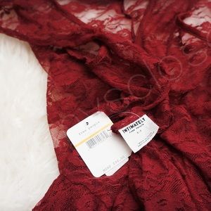 Gorgeous total sheer slip dress from free people with gathered double layer full skirt, ankle asymmetrical length, can be worn in so many ways. Size small: bust 35" waist 32" length 50". New with tag, wine red, sold out in stores and online.