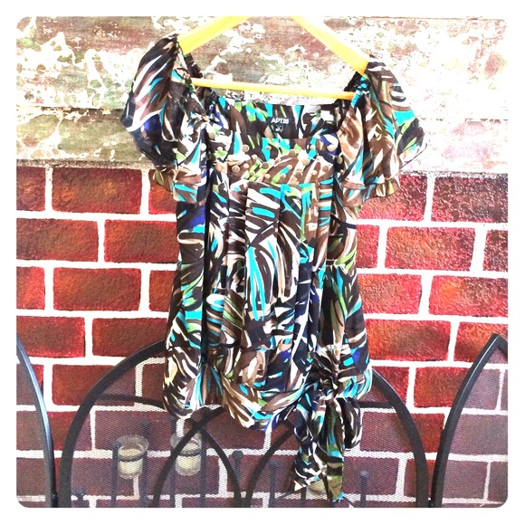 Super cute Apt 9 blouse. Women's size PS. Ties at waste and beaded top. Gently used condition.
