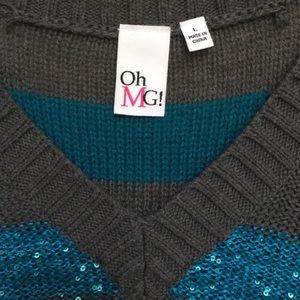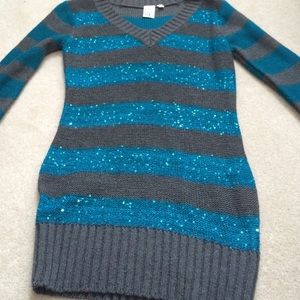 Turquoise Grey sweater 3/4 sleeve juniors SZ L worn a couple times has sequins in EUC