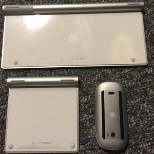 Wireless Bluetooth keyboard wireless Bluetooth trackpad wireless Bluetooth mouse all from Apple store. Not 100% sure if I want to get rid of both the trackpad in the mouse but well for the right price