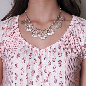 This t-shirt was only worn a few times and is in great condition! No tears or stains. The bottom hem is stretchy as well as the neckline. (Necklace not included)
