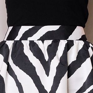 This skirt is adorable! Suitable for any season, this skirt has large box pleats and a zebra pattern. This is a pre owned item, but looks brand new!