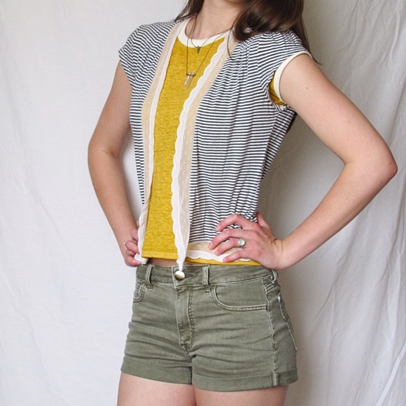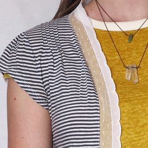 This light weight short sleeved cardigan is adorable! It's the perfect item for layering to add a little something extra to your outfit. This item is used, but does not look worn. Has no holes or stains.