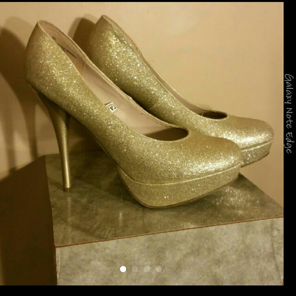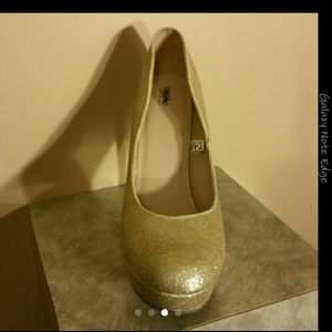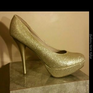 Worn only one time super cute sparkly gold heels. Heel height approx 5-5.5" with a 1-1.5" platform. If you like multiple of my items I do bundle as well as accept reasonable offers on all items.