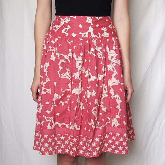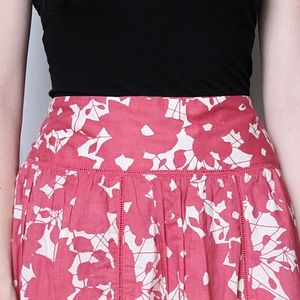 This skirt is adorable! The wide waist band creates a nice silhouette. The light weight material makes this skirt perfect for the hot weather. This skirt is pre owned, but does not have any stains or tears.